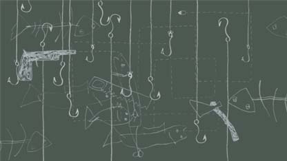Pourquoi et comment parler avec humour d’un sujet si grave et si unanimement condamné? Ma modeste réponse se veut quelque peu provocatrice. Elle prend la forme d’un petit manuel de torture au ton badin et ne masque en rien la dureté du propos. Il remet ce dernier en perspective et le grossit de manière exponentielle, tant ce qui est dit semble de plus en plus énorme et insupportable au fur et à mesure du déroulement du film. Celui-ci semble démarrer tel un simple traité de pêche quelque peu loufoque, jusqu’à l’intolérable de viols et meurtres d’enfants utilisés pour faire pression sur leurs mères… Cette forme distanciée me semble une manière d’impliquer plus directement le spectateur en m’adressant à lui à la première personne. C’est individuellement que le travail d’indignation devra se réaliser. C’est du moins ce que j’espère…